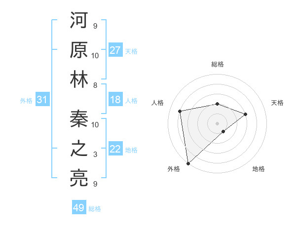 河原林 秦之亮さんを姓名の画数から五運を鑑定