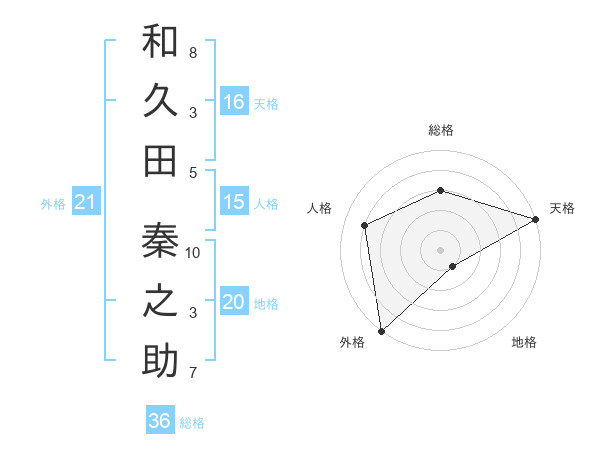 和久田 秦之助さんを姓名の画数から五運を鑑定
