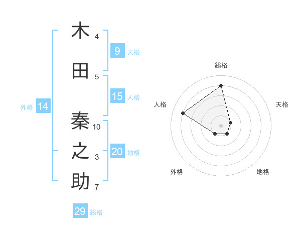 木田 秦之助さんを姓名の画数から五運を鑑定