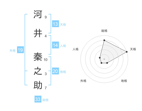 河井 秦之助さんを姓名の画数から五運を鑑定