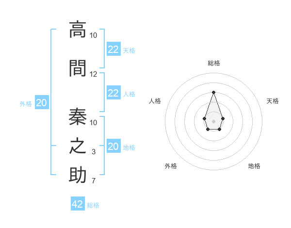 高間 秦之助さんの総格は42画の3点!