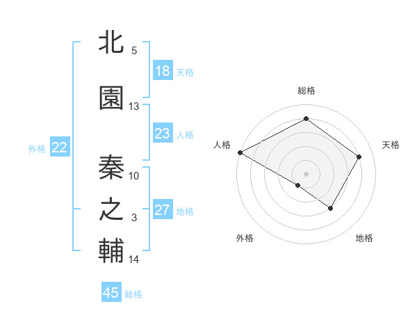 北園 秦之輔さんを姓名の画数から五運を鑑定