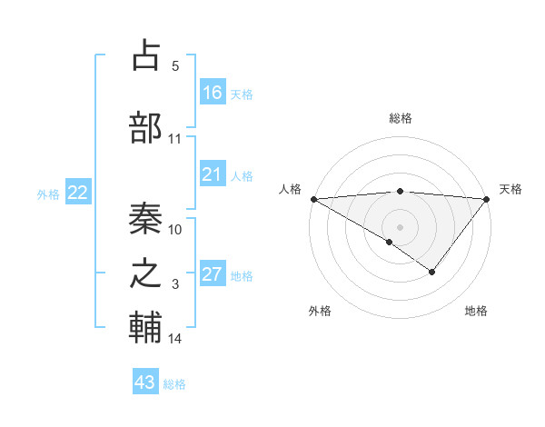 占部 秦之輔さんを姓名の画数から五運を鑑定
