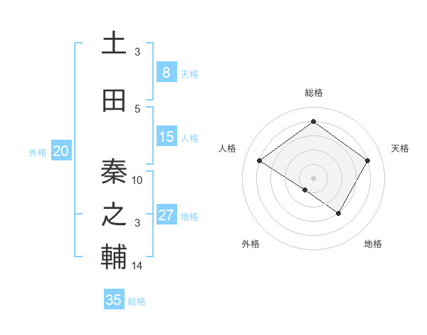 土田 秦之輔さんの総格は35画の4点
