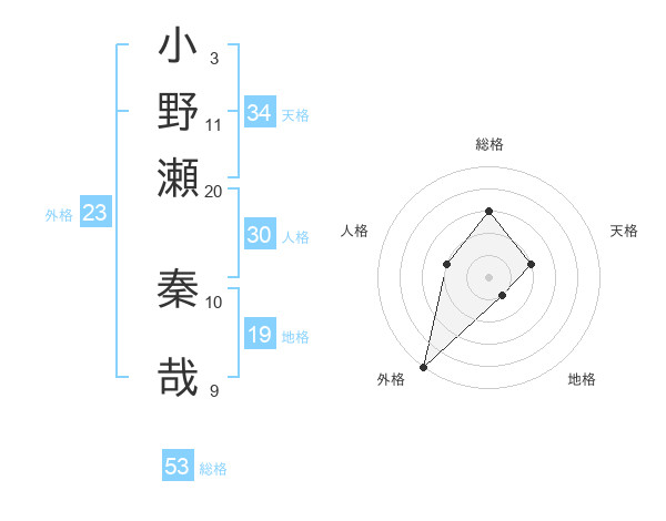 小野瀬 秦哉さんを姓名の画数から五運を鑑定