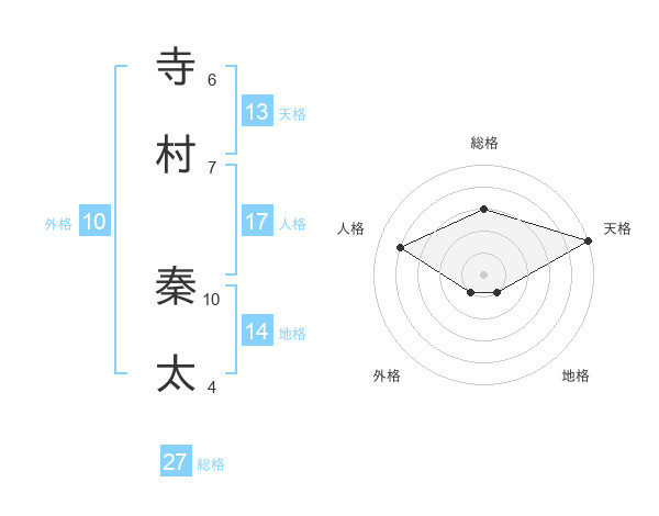 寺村 秦太さんの総格は27画の3点!
