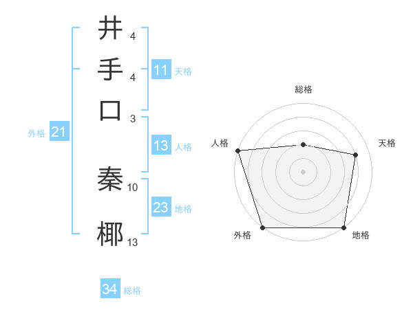 井手口 秦椰さんを姓名の画数から五運を鑑定
