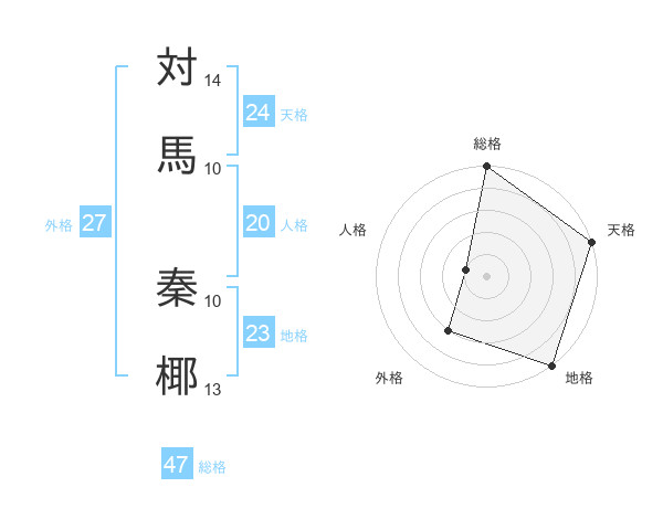 対馬 秦椰さんを姓名の画数から五運を鑑定