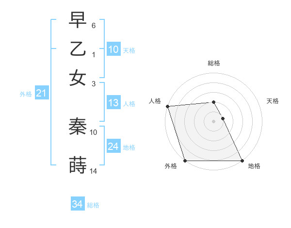 早乙女 秦蒔さんを姓名の画数から五運を鑑定