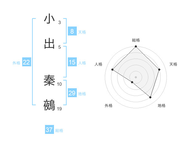 小出 秦鵺さんを姓名の画数から五運を鑑定