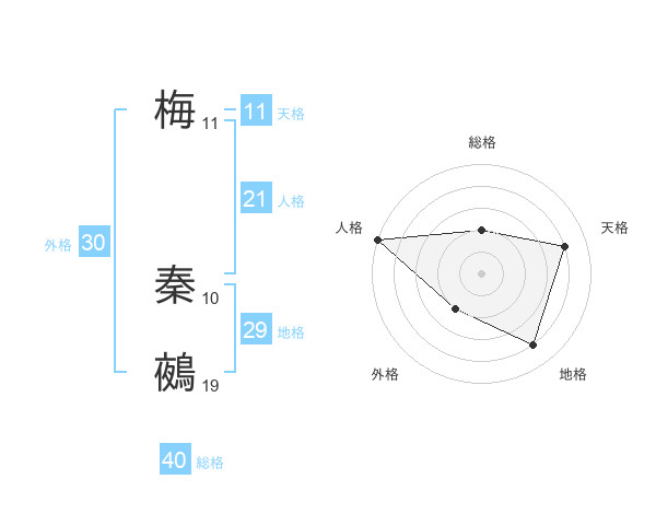 梅 秦鵺さんを姓名の画数から五運を鑑定