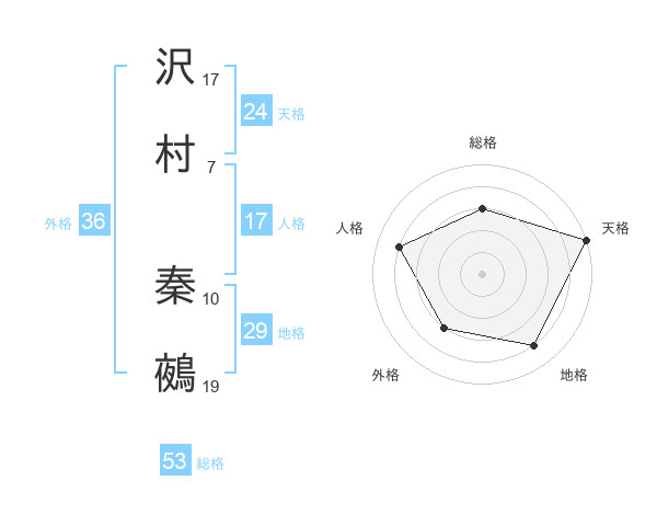 沢村 秦鵺さんを姓名の画数から五運を鑑定