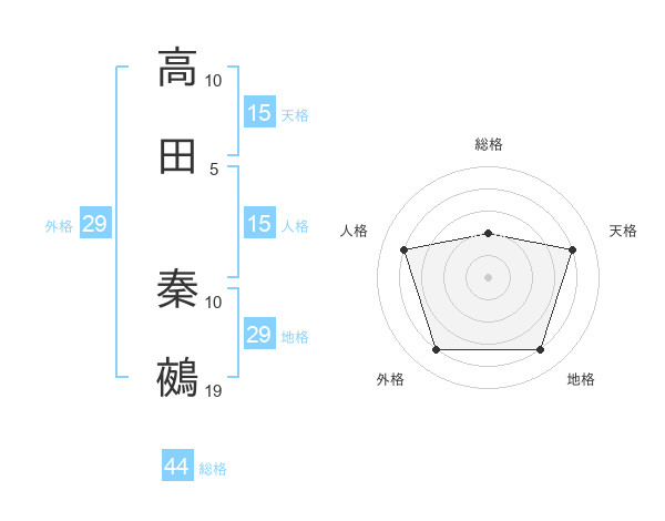 高田 秦鵺さんを姓名の画数から五運を鑑定