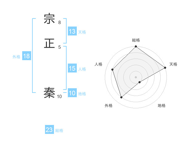 宗正 秦さんの天格は13画の5点!