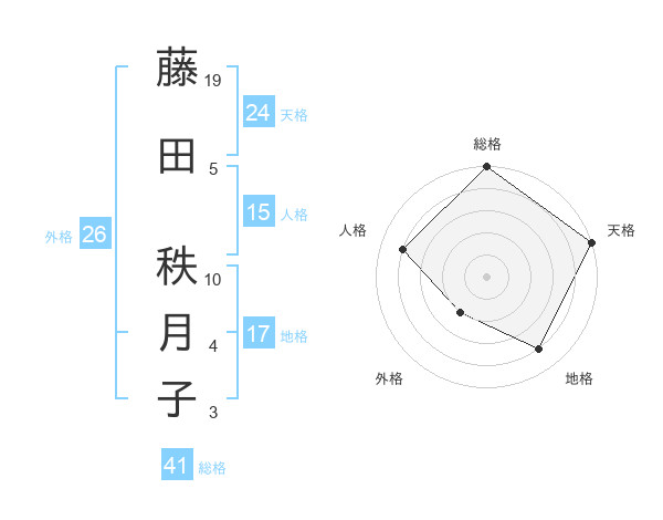 藤田 秩月子さんの総格は41画の5点!