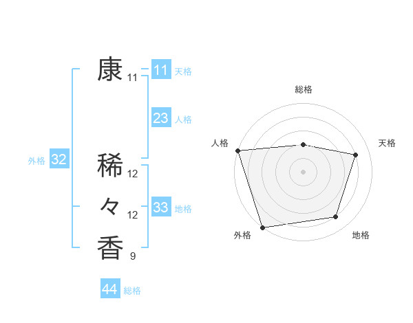 康 稀々香さんの外格は32画の5点!