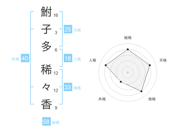 鮒子多 稀々香さんの総格は58画の4点!