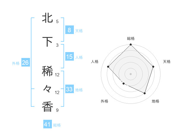 北下 稀々香さんを姓名の画数から五運を鑑定