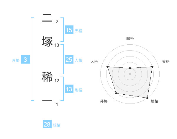 二塚 稀一さんを姓名の画数から五運を鑑定