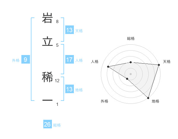岩立 稀一さんを姓名の画数から五運を鑑定