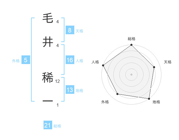 毛井 稀一さんの総格は21画の5点!