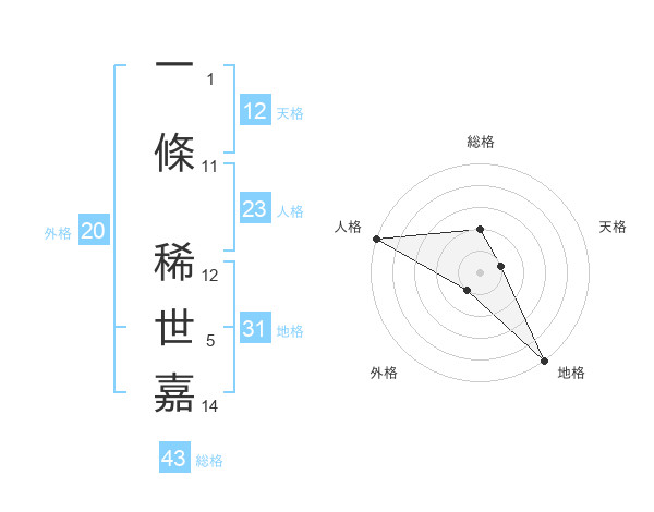 一條 稀世嘉さんの総格は43画の2点!
