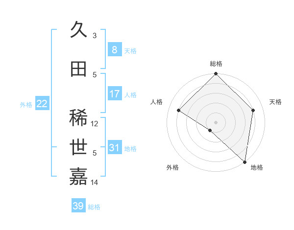 久田 稀世嘉さんを姓名の画数から五運を鑑定
