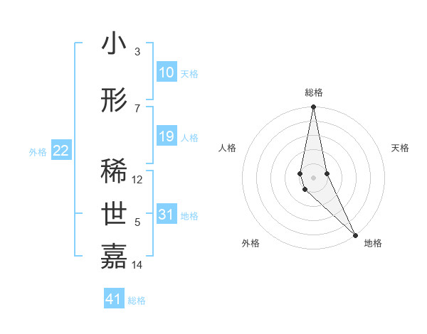 小形 稀世嘉さんの総格は41画の5点!