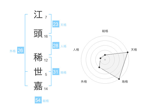 江頭 稀世嘉さんを姓名の画数から五運を鑑定