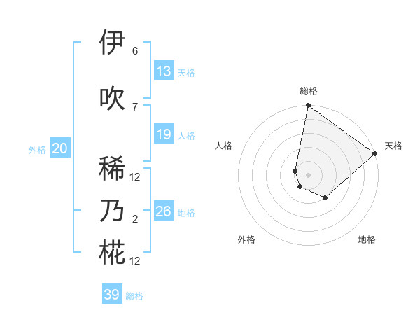 伊吹 稀乃椛さんを姓名の画数から五運を鑑定