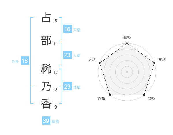 占部 稀乃香さんの外格は16画の5点!