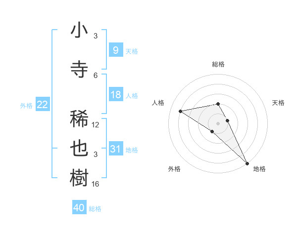 小寺 稀也樹さんを姓名の画数から五運を鑑定