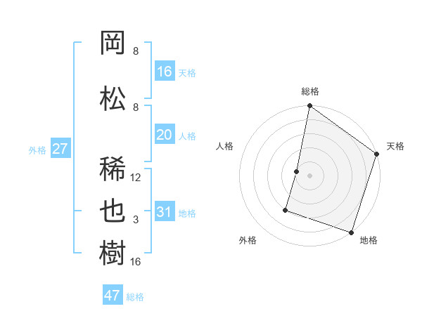 岡松 稀也樹さんを姓名の画数から五運を鑑定