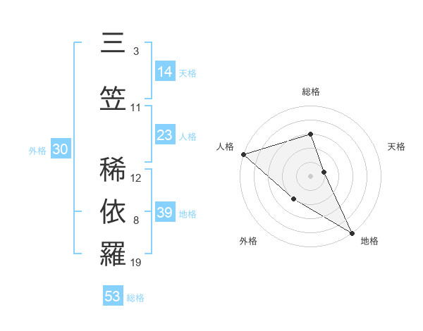 三笠 稀依羅さんを姓名の画数から五運を鑑定