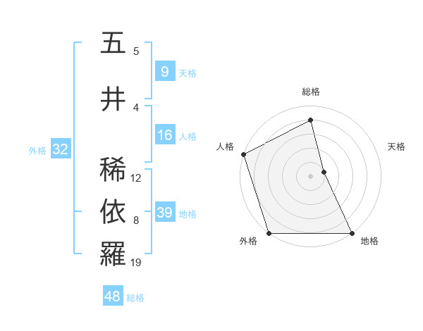 五井 稀依羅さんを姓名の画数から五運を鑑定