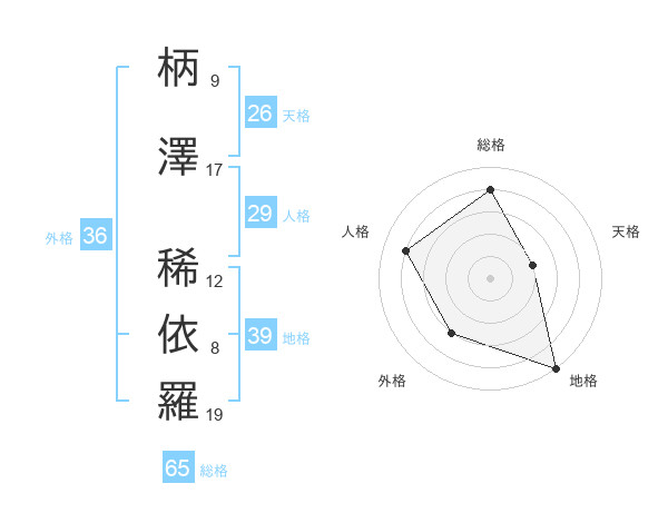 柄澤 稀依羅さんの総格は65画の4点!
