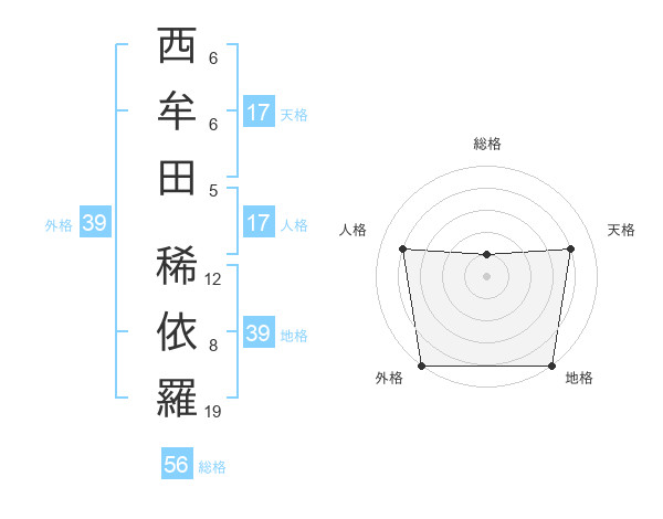 西牟田 稀依羅さんを姓名の画数から五運を鑑定