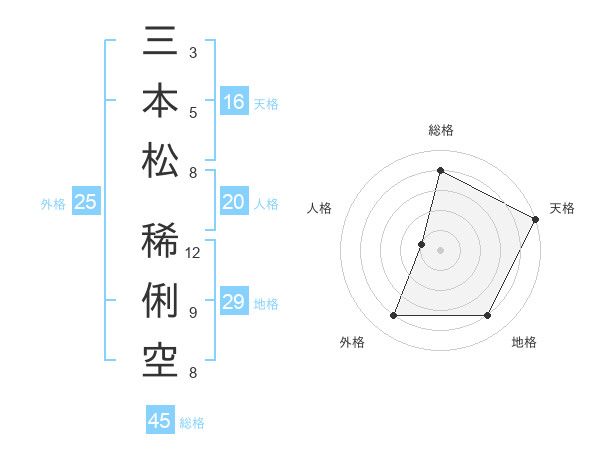 三本松 稀俐空さんの外格は25画の4点!