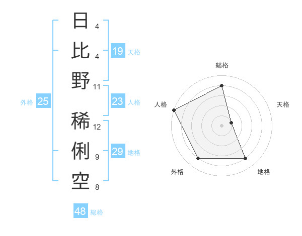 日比野 稀俐空さんを姓名の画数から五運を鑑定