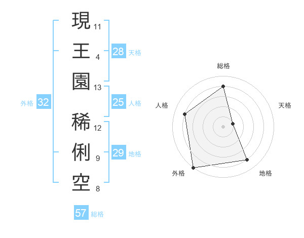 現王園 稀俐空さんの外格は32画の5点!