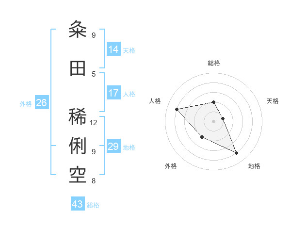 粂田 稀俐空さんを姓名の画数から五運を鑑定
