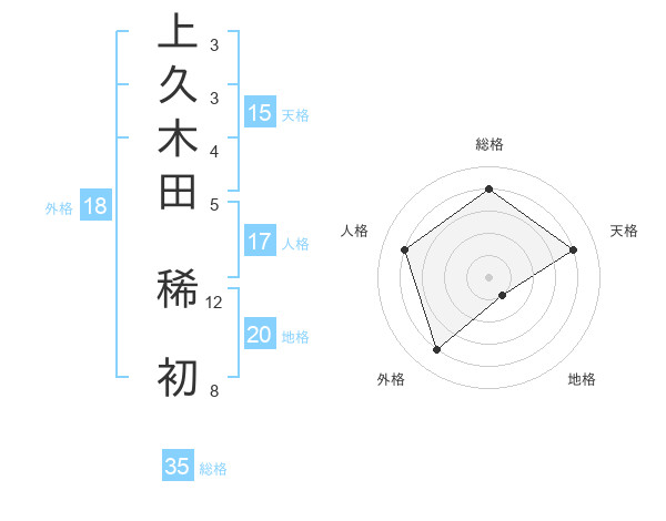 上久木田 稀初さんの総格は35画の4点!