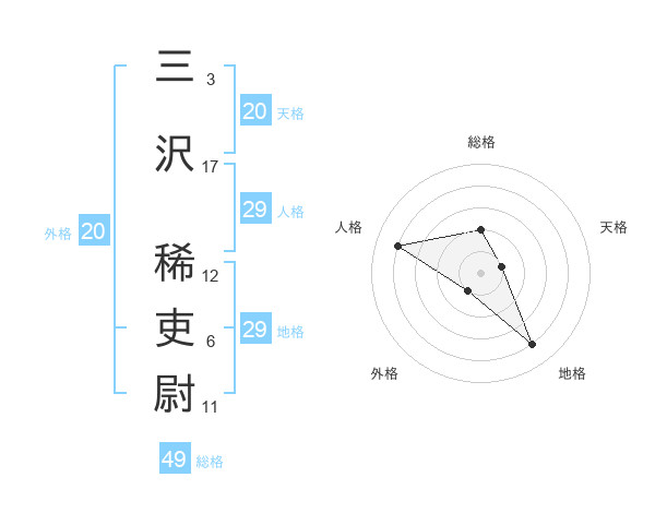 三沢 稀吏尉さんを姓名の画数から五運を鑑定