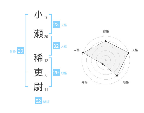 小瀬 稀吏尉さんを姓名の画数から五運を鑑定