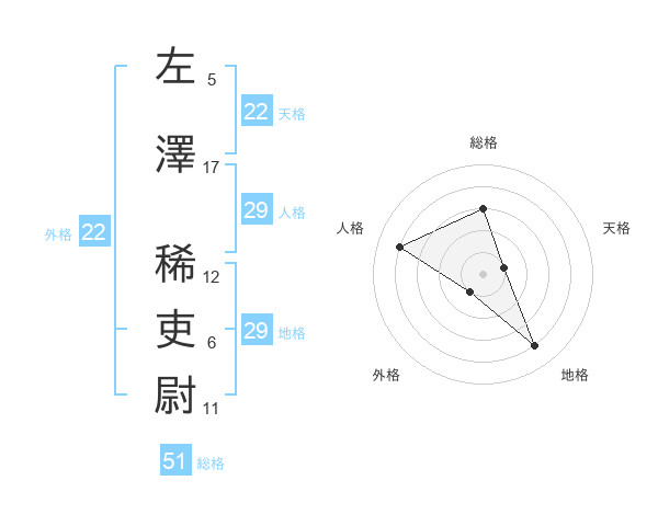 左澤 稀吏尉さんを姓名の画数から五運を鑑定