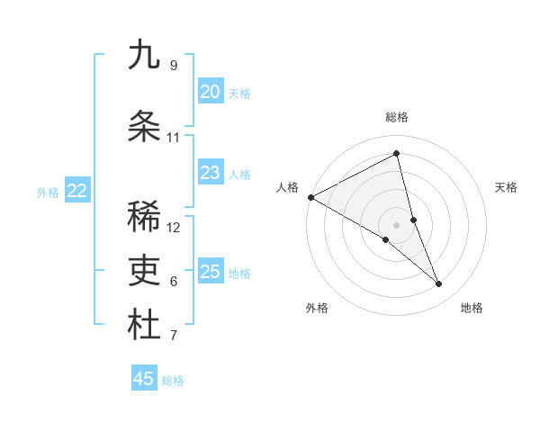 九条 稀吏杜さんを姓名の画数から五運を鑑定
