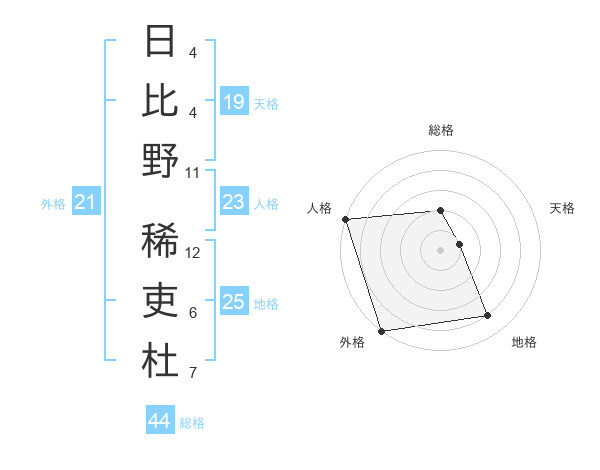 日比野 稀吏杜さんを姓名の画数から五運を鑑定