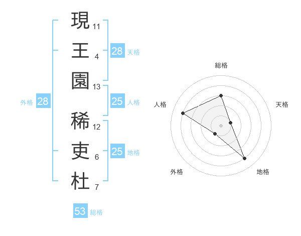 現王園 稀吏杜さんの総格は53画の3点!