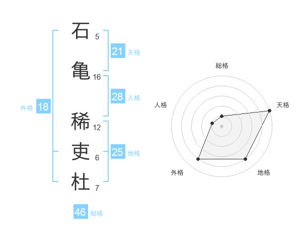 石亀 稀吏杜さんを姓名の画数から五運を鑑定