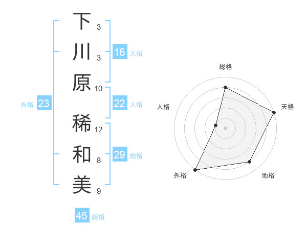 下川原 稀和美さんを姓名の画数から五運を鑑定